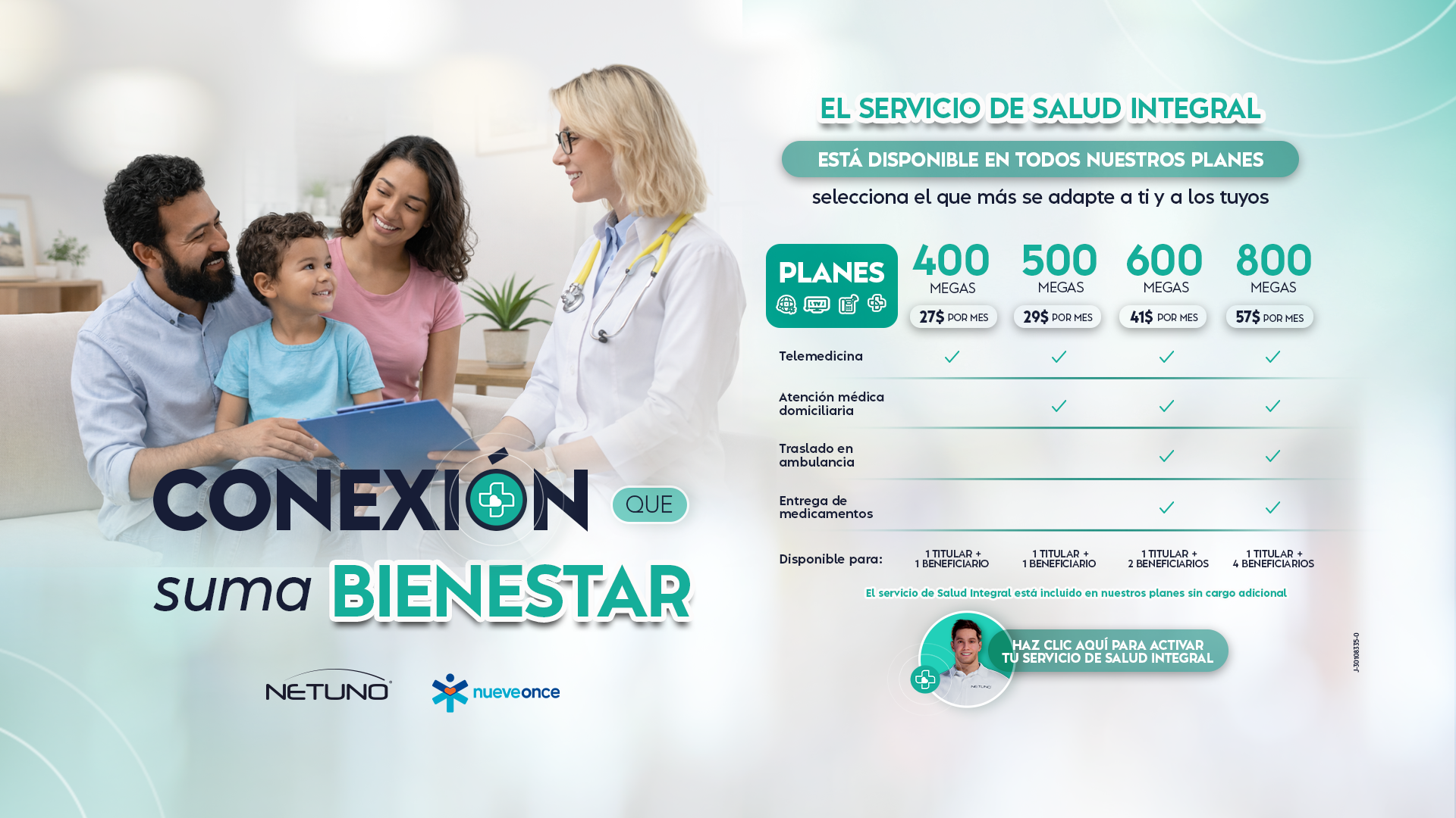 Incluye 1$ de Telefonía + NetUno Go + Salud Integral sin cargo adicional