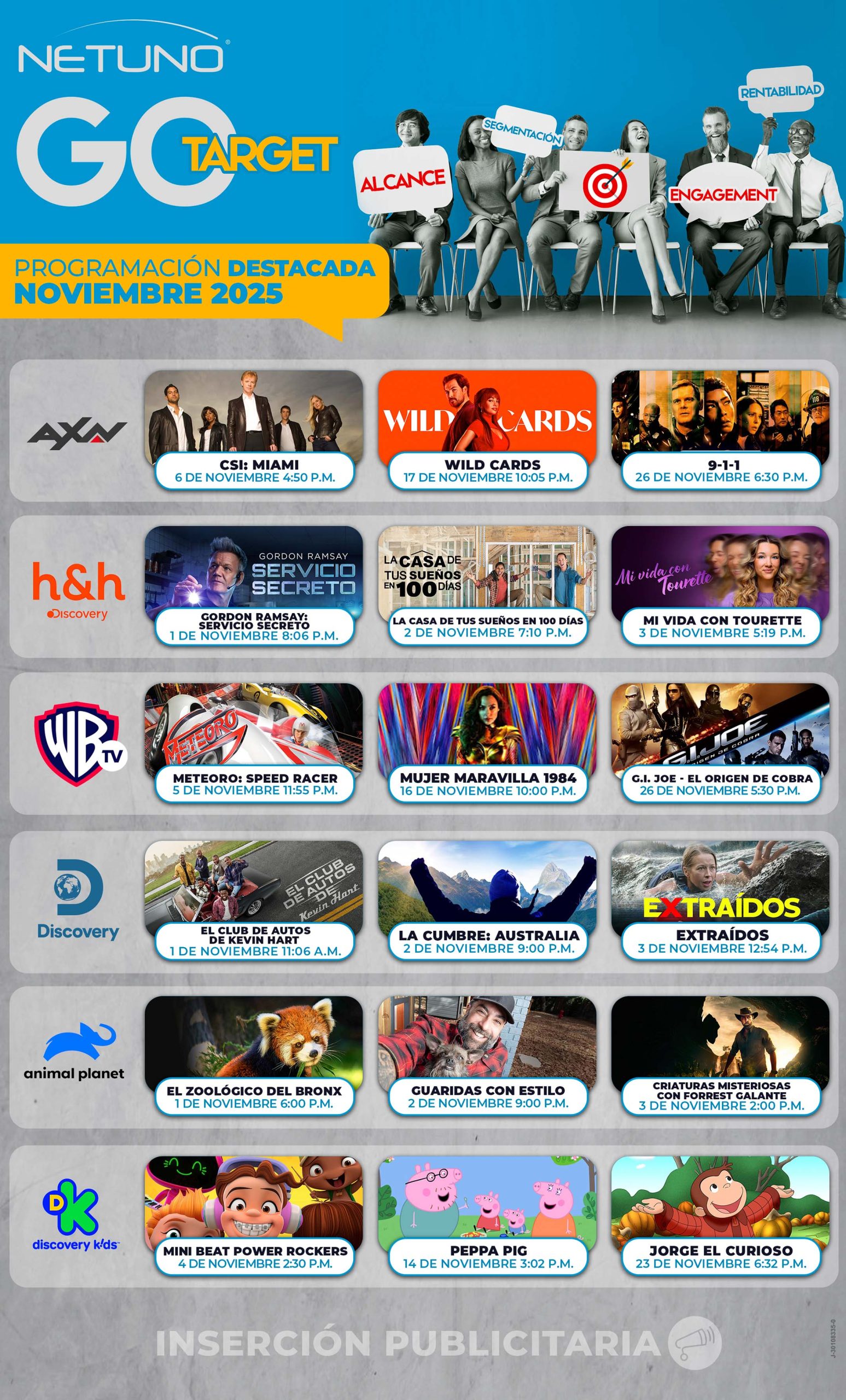 Somos la plataforma ideal para impulsar tu marca, llegando de manera segmentada a más de 450 mil televidentes en el horario y programas que se adaptan a tu público objetivo